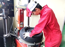 ![]() タイヤ交換作業の様子です。 |